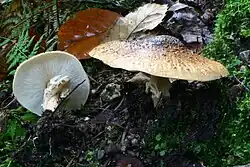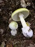 Amanita ochrophylla | Necunoscută. | Miros dezgustător, poate foarte otrăvitor.[8] | ![]() | Toxicitate: grav neurotoxic, halucinogen. Provoacă intoxicații neurotrope. Poate fi confundat cu A. rubescens.[9] | ![]() | Toxicitate: letal! Responsabil pentru majoritatea intoxicațiilor letale. Toxina este amanitina.[10] | ||||||