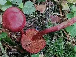 ![]() | Hebeloma crustuliniforme | Ciupercă plângătoare | Toxicitate: Gastrointestinal. Simptomele predominante sunt de natură gastro-intestinală.[115] | ![]() | Hygrocybe conica | Pălăria vrăjitoarei | Ușor otrăvitor. Cauzează probleme gastrointestinale.[116] | ![]() | Hygrocybe nigrescens | Băloasa conică | Ușor otrăvitor. Cauzează probleme gastrointestinale.[117] | |