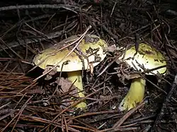 Imperator torosus sin. Boletus torosus | Necunoscută. | Toxicitate: Otrăvitor, cel puțin pentru persoane sensibile.[87] | ![]() | Toxicitate: Poate să fie letal! Responsabil este Sindromul Paxillus.[88] | ![]() | Rubroboletus legaliae sin. Boletus legaliae, Boletus satanoides | Necunoscută. | Suspect, crud foarte toxic.[89] | ||||