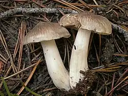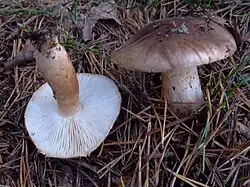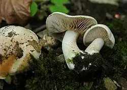 Tricholoma ustale | Necunoscută. | Toxicitate: slab gastrointestinal. Miros neremarcabil sau slab făinos și gust amar.[85] | ![]() | Tricholoma virgatum | Necunoscută. | Toxicitate: destul de grav gastrointestinal. Miros neplăcut și gust amar, foarte iute.[86] |