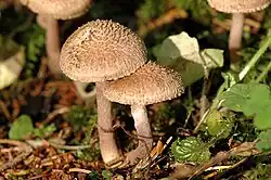 ![]() | Lepiota castanea | Necunoscută. | Toxicitate: letal! Toxina este α-amanitina.[69] | ![]() | Lepiota clypeolaria | Ghebe de brad | Otrăvitor.[70] | Lepiota cristata | Parasol crestat | Otrăvitor.[71] | ||