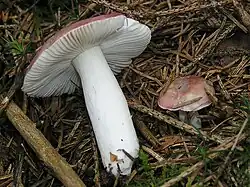 ![]() | Russula betularum | Vinețică de mesteacăn | Toxicitate: slab gastrointestinal.[107] | ![]() | Russula emetica | Vinețica focului, scuipatul dracului | Toxicitate: grav gastrointestinal, rar neurotoxic. Poate fi confundat ușor cu Russula aurea.[108] | ![]() | Russula fragilis | Vinețica ursului | Toxicitate: destul de grav gastrointestinal. [109] | |