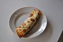 - Carnea de porc și vită împreună cu ceapa tocată se înăbușă la tigaie până se înmoaie, se potrivește cu sare și piper și se trece de două ori prin mașina de tocat, se adaugă oul bătut, mărarul verde mărunțit și cașcavalul ras. Se umplu foile de clătită, se dau prin ou și pesmet și se prăjesc uniform în ulei încins. Se servesc fierbinți cu sos de roșii și smântână.