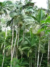 Datorită acestor factori climatici, vegetația predominantă este cea semperviriscentă (veșnic verde), luxuriantă, cu arbori stratificați (în 3 straturi: 5–15 m, 15-40m, 40-60m), sub aceste straturi aflându-se arbuști și ierburi la periferia pădurilor. În interiorul pădurilor și între straturi cresc liane și plante epifite (plante fixate pe arbori). Arborii care constituie aceste păduri ecuatoriale sunt: palmierii (peste 1500 specii, cuprinzând și palmierul de ulei și palmierul de cocos ), arborele de cauciuc, arborele de cacao, arborele de cafea, mahonul, accaju etc. Pe țărmurile afectate de maree cresc mangrove.