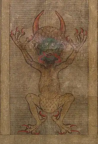 Portretele reprezentându-l pe Diavol, sunt comune în arta medievală, însă cel din Codex este unic prin faptul că îl prezintă singur, ocupând o pagină întreagă.