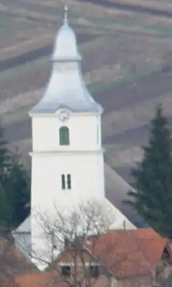 Biserica a fost construită de nobilul Ferenc Thoroczkay în secolul al XVII-lea. A suferit numeroase distrugeri. În forma sa actuală a fost terminată abia în anul 1890. Deasupra intrării în biserică este incastrată o placă comemorativă. În interiorul bisericii se găsește stema grofului Thoroczkay Miklós.