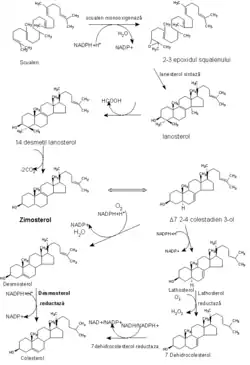 Scualenul prin procese de ciclizare și oxidare se transformă în lanosterol, iar acesta prin reacții de ciclizare, oxidare formează colesterolul.