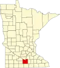 ![]() Harta statului Minnesota indicând comitatul Blue Earth |