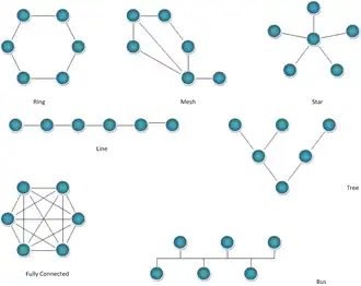Topologia (structura) unei rețele rezultă din modul de conectare a elementelor rețelei între ele. Ea determină și traseul concret pe care circulă informația în rețea "de la A la B". Principalele tipuri de topologii pentru rețelele LAN sunt: