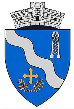 Coroana murală cu un turn crenelat semnifică faptul că localitatea are rangul de comună.