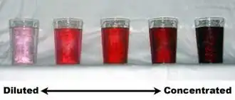 Concentrația unui amestec sau soluții exprimă cantitativ componența acestuia, prin raportate la volumul total al acestui amestec (în cazul concentrațiilor volumetrice). Valoarea concentrației poate scădea sau crește datorită reacțiilor chimice sau transformărilor de stare ale componenților amestecului. Diluția sau diluarea este o operație prin care se realizează o reducere a concentrației unei substanțe dintr-un lichid. Concentrarea e operația inversă prin care concentrația unei soluții crește datorită de exemplu evaporării solventului.