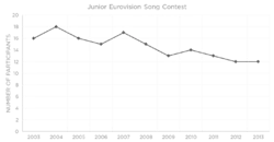 Pe lângă țările participante, ediția din 2003 a fost difuzată și în Estonia, Finlanda și Germania (țară care a debutat de abia în 2020), urmați de Andorra în 2006, și Bosnia și Herțegovina, din 2006 până în 2011, țări ce nu au participat vreodată. Începând cu 2006, competiția a fost difuzată în direct pe Internet, prin intermediul site-ului concursului. Australia a fost invitată să participe din 2015, iar Kazahstan din 2018, fâcănd competiția singurul eveniment major Eurovision care să includă multipli membri asociați ai UERT.