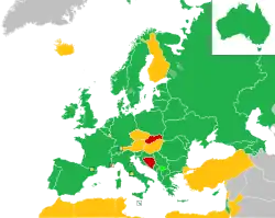 Țările marcate cu gri au participat în trecut, dar s-au retras.