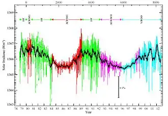Măsurătorile directe instrumentale ale oțelului solar constant au fost făcute odată cu dezvoltarea astronomiei extra-atmosferice, adică de la mijlocul anilor 1960, cu observații anterioare de la suprafața Pământului, a trebuit să corectăm absorbția radiației solare de către atmosferă.
