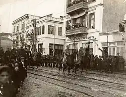 După victoria grecilor în bătălia de la Sarantaporo de la 22 octombrie și după alte câteva victorii, trupele conduse de prințul moștenitor ajung la porțile Salonicului și încercuiesc orașul. Comandantul orașului și al celei de-a treia armate turce, Pașa Hussein Tashin a cerut începerea negocierilor cu Statul Major grec și cu reprezentanți ai Bulgariei a cărui armată se apropia rapid de oraș. Condițiile oferite de greci au fost mai bune pentru turci astfel încât la 8 noiembrie trupele grecești au intrat în Salonic[23][24].
