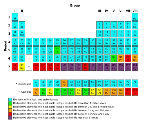 Elemente radioactive: izotopul cel mai stabil are un timp de înjumătățire de la o zi la 103 ani