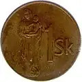 revers: Fecioara Maria cu Pruncul Isus, valoarea nominală: 1 Sk |