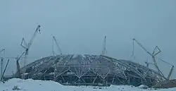 Proiectarea stadionului a fost aprobată (reaprobată) de către Glavgosexpertiza din Rusia la 19 iulie 2017. În 2019 stadionul a fost al doilea la un vot popular pentru Stadionul anului.