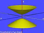 | Hiperboloid cu două pânze[6] | ![]() | |