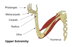 Scheletul antebrațului: ulna este situată în partea superioară, radiusul în partea inferioară.