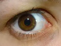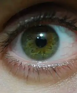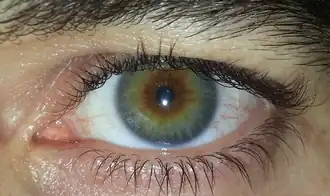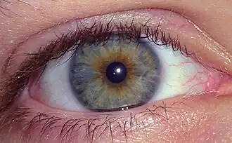 Culoarea ochilor este un caracter poligenic și este determinat îndeosebi de cantitatea și de tipul de pigmenți prezenți în irisul ochiului.[1][2]
