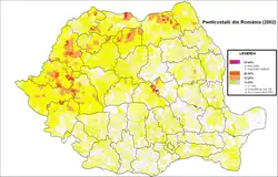 Potrivit recensământului din 2002, cultul penticostal număra în România 324.462 de membri,[8] fiind astfel, ca mărime, a patra biserică din România (după cea ortodoxă, romano-catolică și calvină) și a doua biserică protestantă (după cea calvină). Din punct de vedere etnic, credincioșii sunt în majoritate români (85,2%), fiind urmați de țigani (rromi) cu 10,6%, ucraineni cu 1.9%, maghiari (unguri) cu 1.8%, slovaci cu 0,2%, germani cu 0,2% și alte grupuri etnice (sârbi, evrei, lipoveni etc) cu 0,1%.[9]