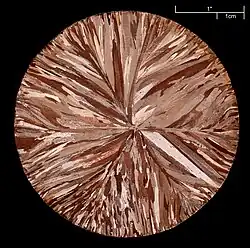 Cu toate acestea, cuprul este impur, de puritate 95-98%;impuritățile constau în fier, plumb, zinc, stibiu, aur și argint, precum și cantități mici de sulf și arsen. Îndepărtarea impurităților se face într-un cuptor cu flacără, sau prin cuprul electrolitic (prin electroliză), obținându-se cupru de puritate aproape maximă, 99,9%.[17]