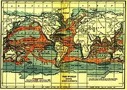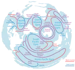 - a) curenți permanenți, care-și mențin tot timpul direcția și viteza, formând așa-numita „circulație oceanică generală"