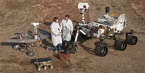Curiosity este un rover proiectat pentru a explora craterul Gale de pe Marte, ca parte a misiunii NASA Mars Science Laboratory (MSL).[4] Curiosity a fost lansat de la Cape Canaveral la 26 noiembrie 2011, ora 15:02 UTC și a aterizat pe Aeolis Palus în interiorul Gale la 6 august 2012, ora 05:17 UTC.[7][8][21] Obiectivele roverului au inclus o investigație a climatului și a geologiei marțiene; cercetarea dacă situl a oferit vreodată condiții de mediu favorabile vieții microbiene, inclusiv investigarea rolului apei; și studii privind habitatele planetare în pregătirea explorării umane a planetei.[22][23]
