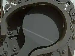 Spectrometerul CheMin al Curiosity, Marte, 11 septembrie 2012, cu intrarea de probe închisă și deschisă.