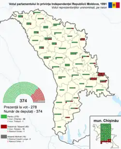 Voturile exprimate de deputați în privința independenței Republicii Moldova, pe raioane