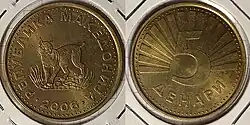 - ↑ en Site al Băncii Naționale a Republicii Macedonia - Fabricarea și distribuirea monedei