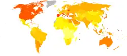 În 2010, se estima că la nivel global există 285 milioane de persoane care suferă de diabet de tip 2, adică 90% din cazurile de diabet.[6] Aceasta înseamnă aproximativ 6% din populația adultă a lumii.[56] Diabetul este frecvent atât în țările dezvoltate, cât și în țările în curs de dezvoltare.[6] Cu toate acestea, incidența bolii rămâne scăzută în țările subdezvoltate.[3]