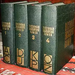 • Academia Republicii Populare Române, Dicționar enciclopedic român, Editura Politică, București, 1962-1966