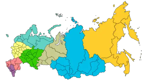 Rusia este împărțită în 9 districte federale (în limba rusă: федера́льные округа́, sing. федера́льный о́круг) (patru în Europa, trei în Asia).