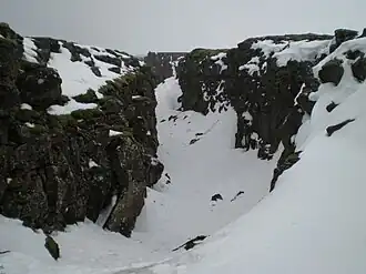 - Islanda (Hvannadalshnúkur în Vatnajökull, 2109,6 m (la 64° 01' N, 16° 41' V), prin care trece dorsala