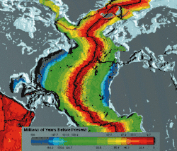 Această limită divergentă s-a format prima dată în perioada Triasicului. Dovezi ale dorsalei atlantice ancestrale sunt văile fluviilor mari din Americi și Africa (inclusiv Fluviul Mississippi, fluviul Amazon și Niger).