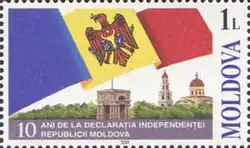 Timbru din 2001 comemorând cei zece ani de independență