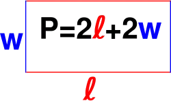 - perimetrul dreptunghiului este egal cu dublul sumei dintre lungime și lățime: ;