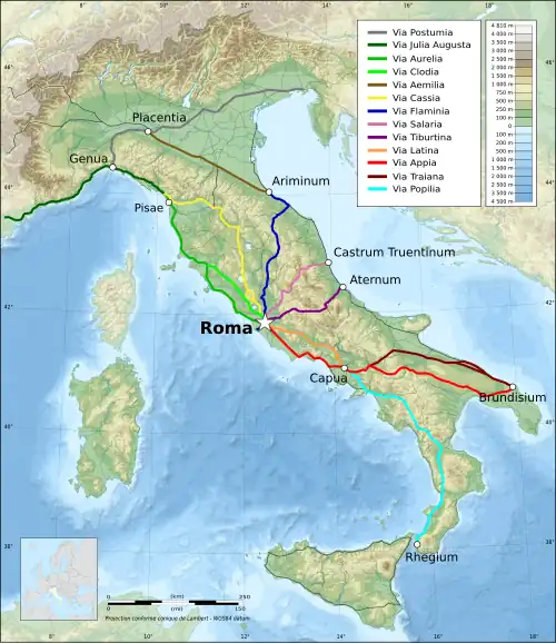 Drumurile legau între ele cetățile din toate punctele Italiei, apoi ale Imperiului, cu centrele de decizie politice sau economice. Ele permiteau deplasările ușor practicabile pentru epocă, ale trupelor sau negustorilor și curierilor.