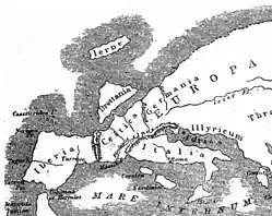 Hartă a Europei după Strabon, care ajută la înțelegerea erorilor în descrierea itinerariilor drumurilor romane din epoca sa.