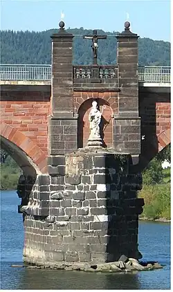 Podul de la Trier (Germania) era unul din aceste poduri mixte cu stâlpi de zidărie de piatră și tablier de lemn. Până astăzi, stâlpii romani s-au păstrat, dar tablierul, mai recent, este din piatră cioplită.