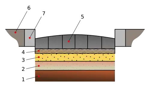 (5). Dorsum: blocuri poligonale de silex, sau blocuri rectangulare de tuf vulcanic sau de alte pietre din împrejurimi, formând suprafața drumului. Forma eliptică permitea să se evite ca apa de ploaie să stagneze pe mijlocul drumului. Dedesubtul blocurilor era uneori crestate în mod voit, ceea ce permitea o mai bună ținută pe nucleus.