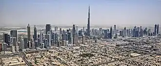 Dubai găzduiește al doilea cel mai mare număr de hoteluri de cinci stele din lume și cea mai înaltă clădire din lume, Burj Khalifa, care are 828 de metri.[11][12] Situat în partea estică a Peninsulei Arabice, pe coasta Golfului Persic, Dubai este un important nod global de transport pentru pasageri și mărfuri. În 2023, Dubai a fost al treilea cel mai vizitat oraș din lume.[13][14][15]