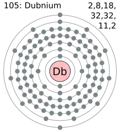 | Nume, Simbol, Număr | Dubniu, Db, 105 | ||||||||||||||||||||||||||||||||||||||||||||||||||||||||||||||||||||||||||||||||||||||||||||||||||||||||||||||||||||||||||||||||||||||||||||||||||||||||||||||