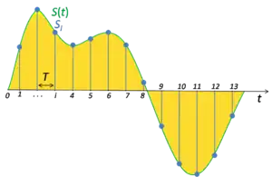 Se dă x(t) ca semnal continuu care urmează să fie eșantionat, iar această eșantionare este efectuată prin măsurarea valorii semnalului continuu la fiecare T secunde, ceea ce se numește interval de eșantionare. Prin urmare, semnalul eșantionat x[n] dat de: