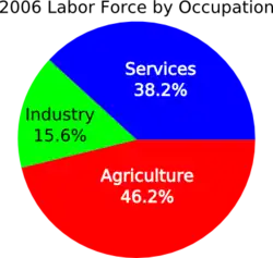 | Forța de muncă după ocupație | servicii (44,2%), industrie (16,8%), agricultură (39%) (est. 2008)[2] |