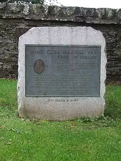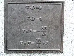 - ↑ Textul inscripției (fragment): Scurta sa viață a fost bogată în distinse contribuții la toate ramurile științelor fizice — căldură, lumină, mecanică. Mai presus de toate, prin unificarea teoriilor electricității și magnetismului el a stabilit un fundament sigur pentru fizica modernă, electrotehnică și astronomie și a pregătit calea pentru comunicațiile radio și televiziune.