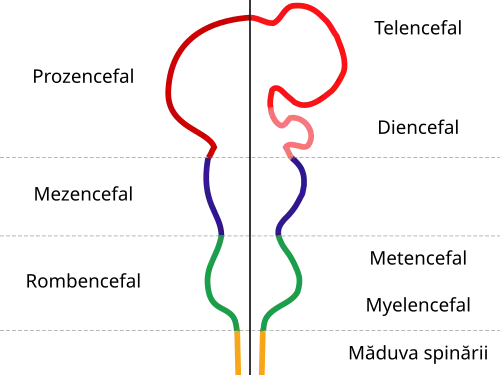 Embriogeneza sistemului nervos: prozencefalul (~ săptămâna 4) se dezvoltă în diencefal și telencefal.