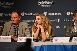 ![]() Emmelie cu trofeul Eurovision 2013 | |